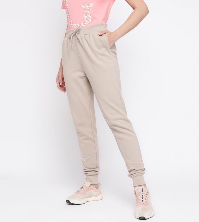Elevate your casual style with our beige joggers for women. Crafted from soft cotton fabric these joggers feature a solid pattern and a comfortable drawstring closure. Perfect for lounging or running errands they offer a blend of comfort and chic simplicity. Embrace effortless elegance with every step.
