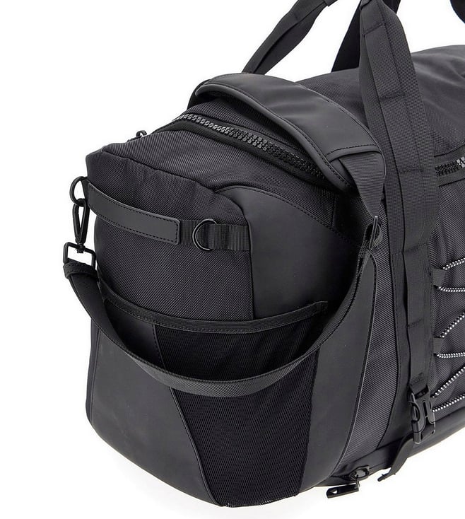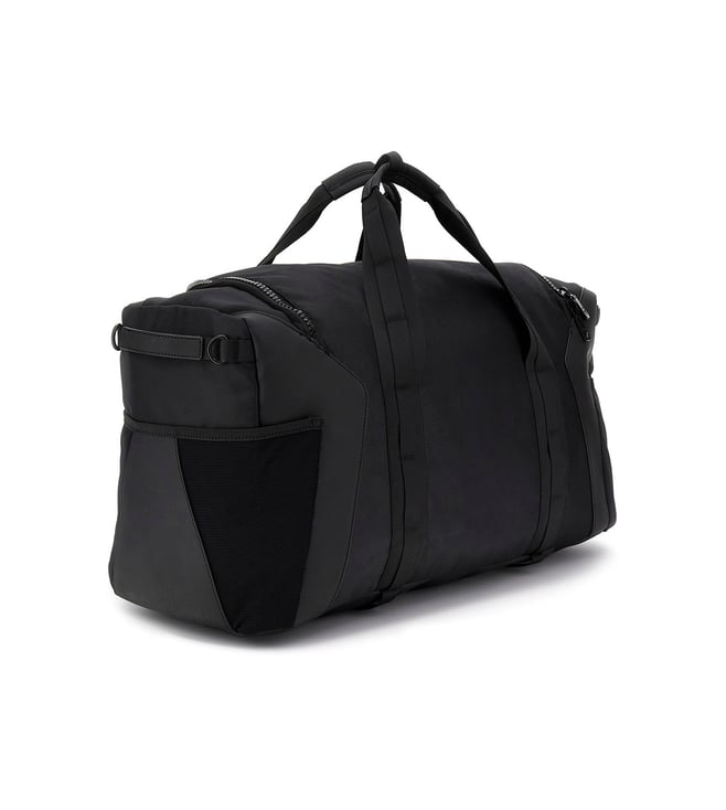 This sleek black duffle bag, crafted from durable polyurethane fabric, exudes a modern, masculine elegance. Its solid pattern offers a timeless appeal, perfect for the discerning man on the go. The bag's spacious interior accommodates all essentials, while its sturdy handles and detachable shoulder strap ensure versatile carrying options. Designed for both style and functionality, this duffle bag is the ultimate companion for gym sessions, weekend getaways, or business trips, embodying sophistication and practicality.