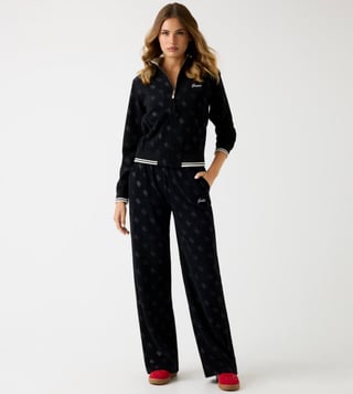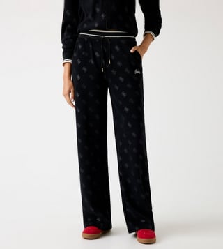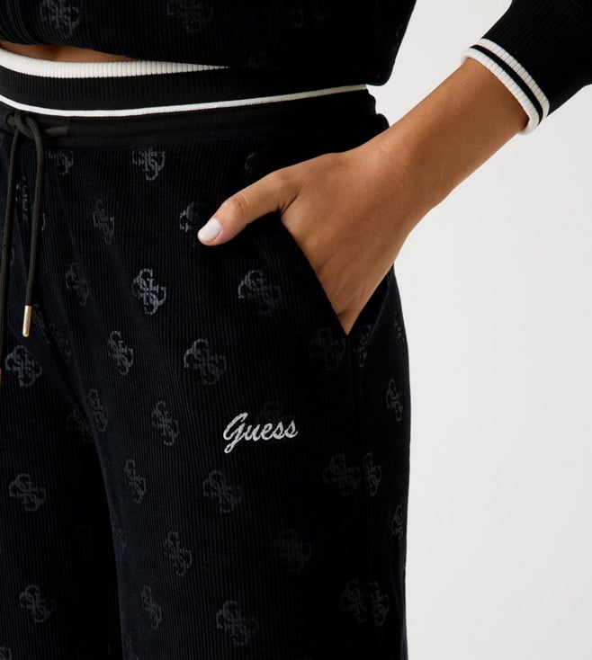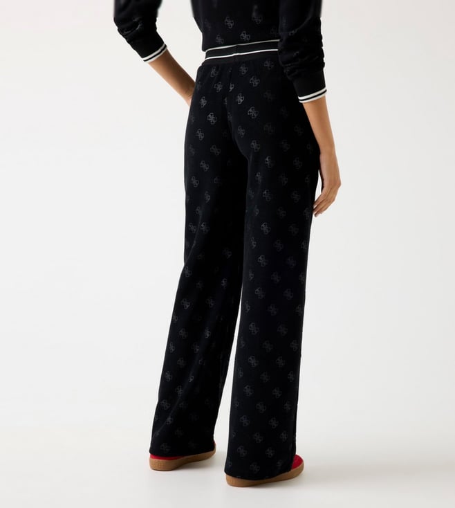Guess Black Geometric Print High-Rise Straight Track Pants