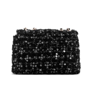 Turn heads with the Guess Black Gold Sequin Giully Mini Crossbody Bag. This dazzling mini bag is crafted from shimmering black sequins, adding a touch of glamour to any outfit. The compact design features a top zip closure, a convenient adjustable shoulder strap, and a spacious interior perfect for essentials. The gold-toned hardware adds a touch of luxury, while the Guess logo adds a signature touch. Perfect for evening events, parties, or a night out on the town, this bag is sure to make a statement.