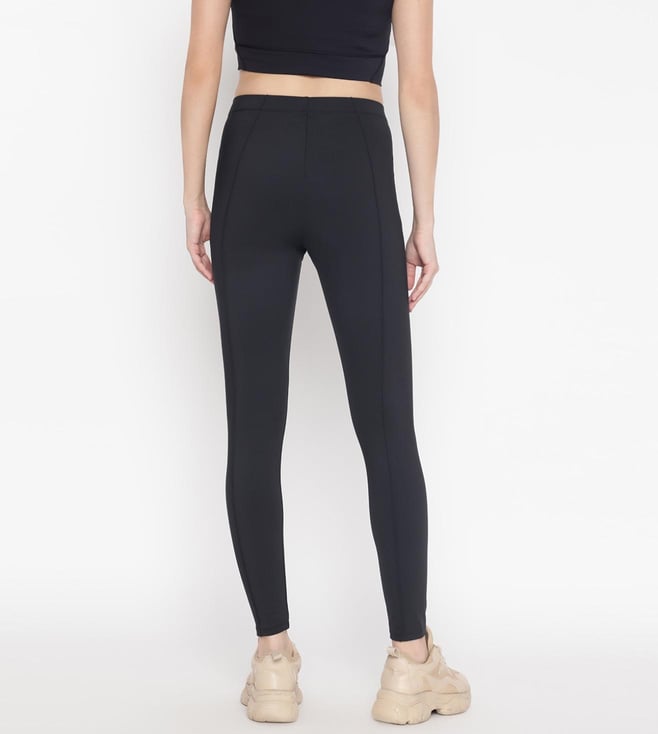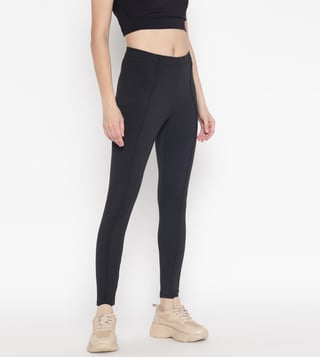 Elevate your style with our black skinny-fit leggings crafted from a luxurious polyester blend fabric. Featuring an elastic closure for ultimate comfort these solid-patterned leggings offer a sleek silhouette perfect for any occasion. Designed for women who value both fashion and function these leggings are your go-to wardrobe essential.