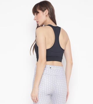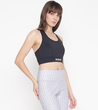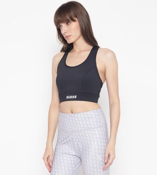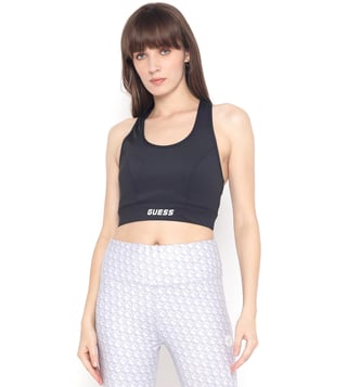 Guess Black Solid Scoop Neck Sleeveless Crop Top