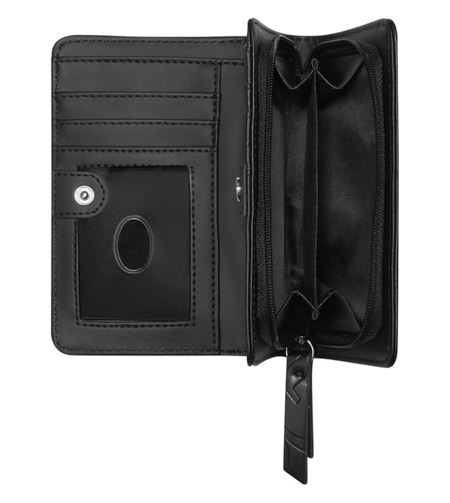 Discover the perfect blend of style and functionality with this zip around wallet in black. Crafted from durable pu fabric, it features a chic typography pattern. Designed for women, this wallet offers ample space for cards and cash, ensuring your essentials are organized and secure. Elevate your everyday accessory game.