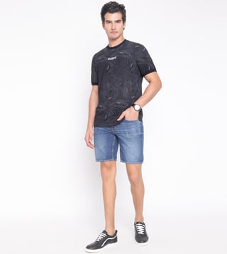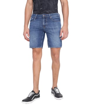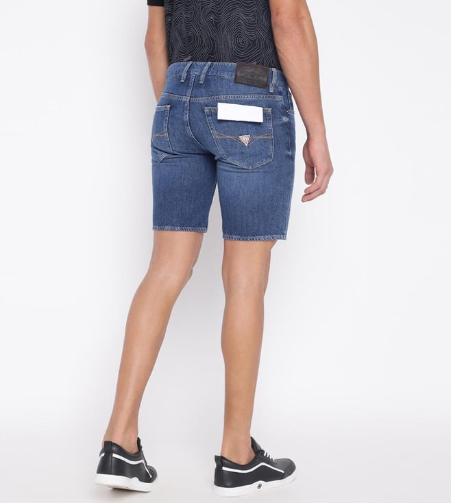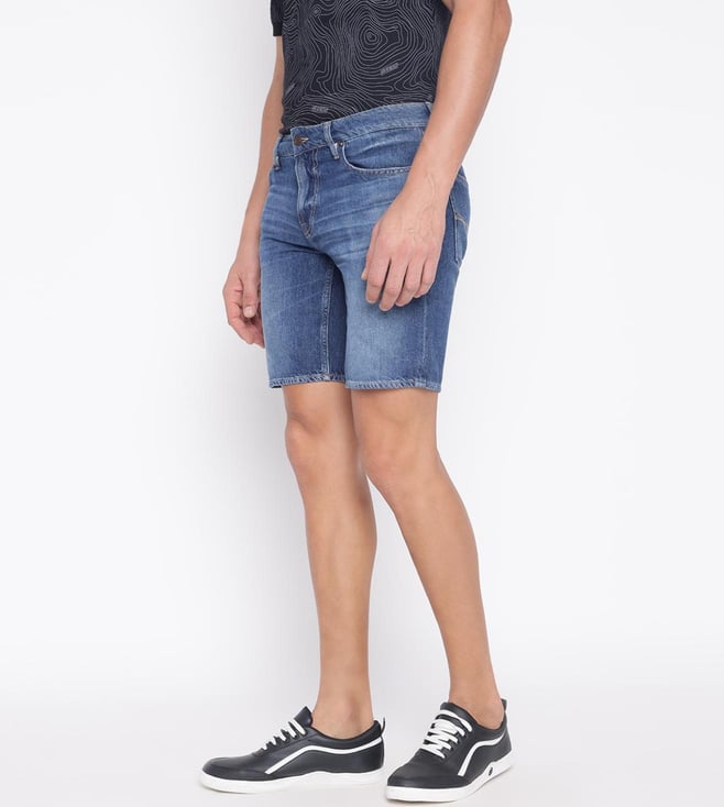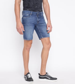Experience ultimate comfort and style with our blue denim shorts for men. Crafted from a premium cotton blend fabric these regular fit shorts feature a solid pattern and a secure button closure. Perfect for casual outings they offer a timeless look that effortlessly complements any wardrobe.