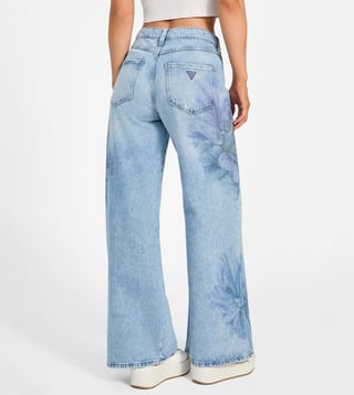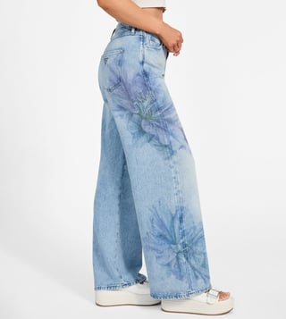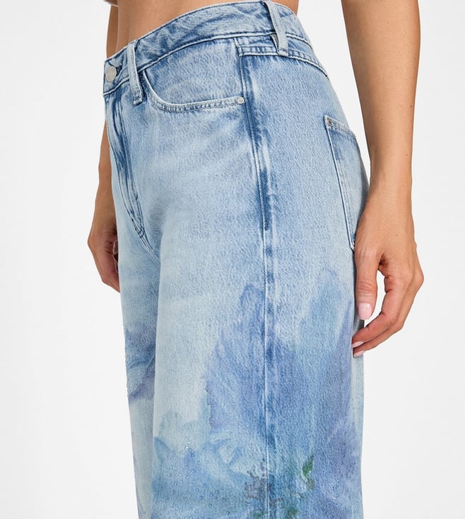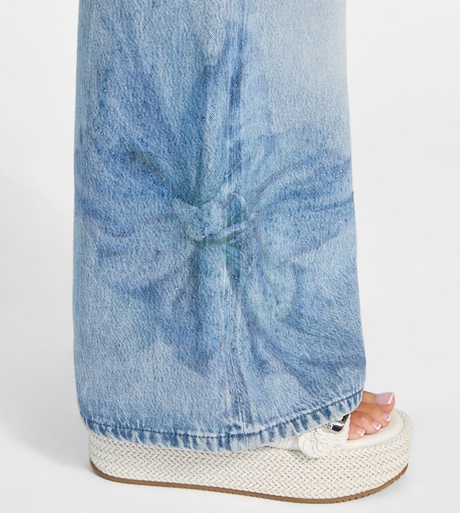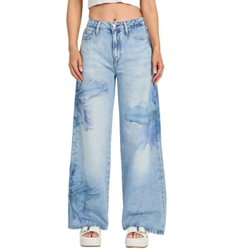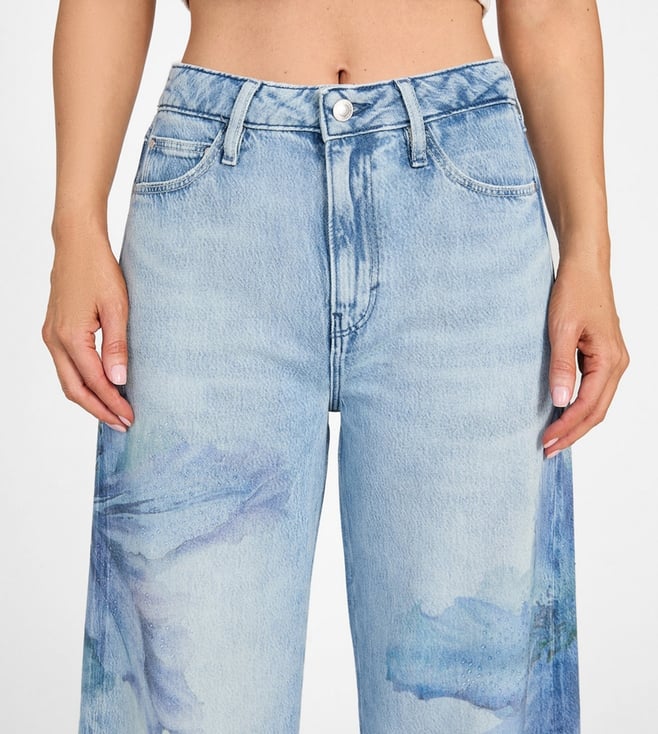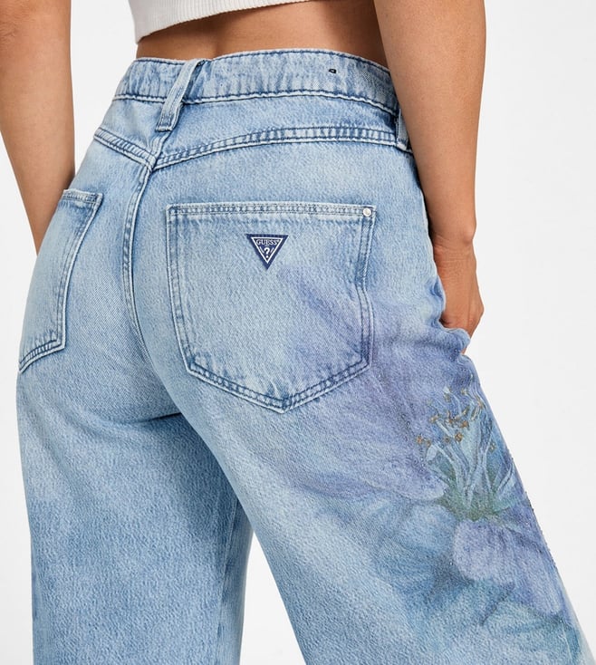 Guess Blue Cotton Blend Printed Jeans