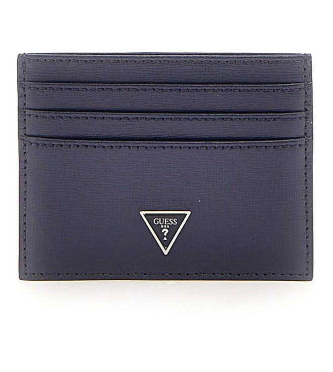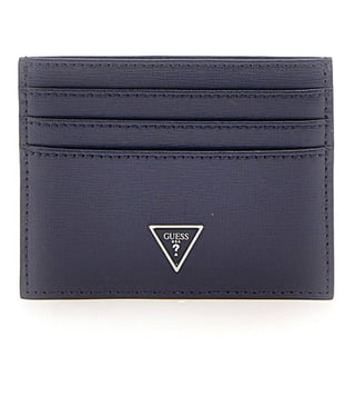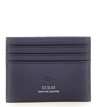 Carry your essentials in style with this sleek Guess card case, crafted from 100 percent genuine leather for durability and sophistication. Designed in a refined blue hue, it features multiple card slots to keep your credit cards, IDs, and business cards organized while maintaining a slim, pocket-friendly profile. Finished with the signature Guess branding, this card case blends modern elegance with everyday functionality perfect for those who prefer minimal yet classy accessories.
