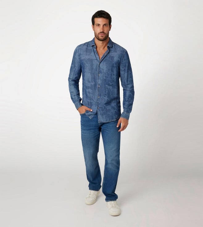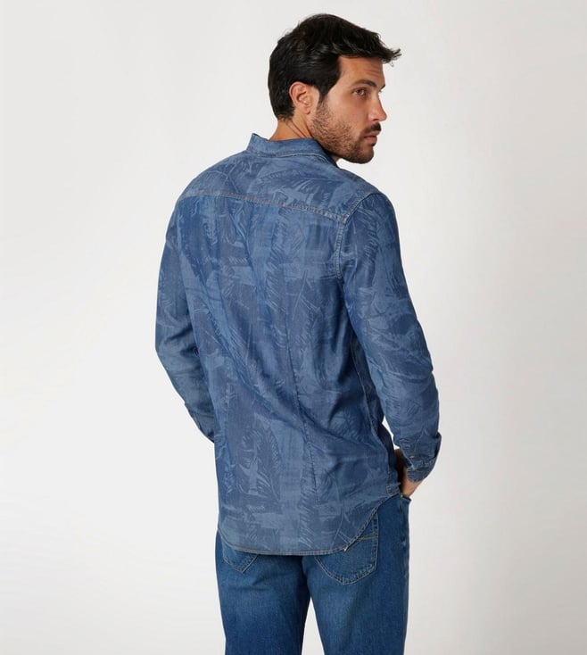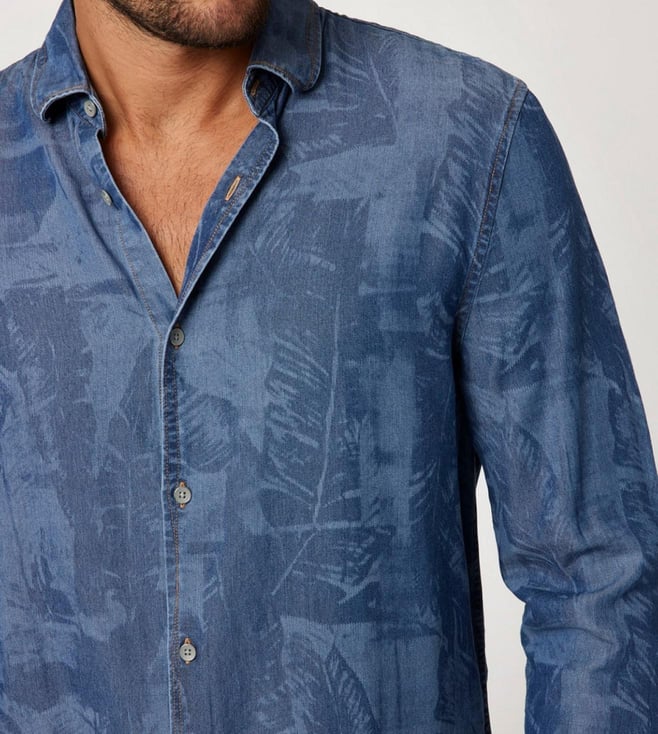 GUESS Blue Lyocell Slim Fit Printed Shirt