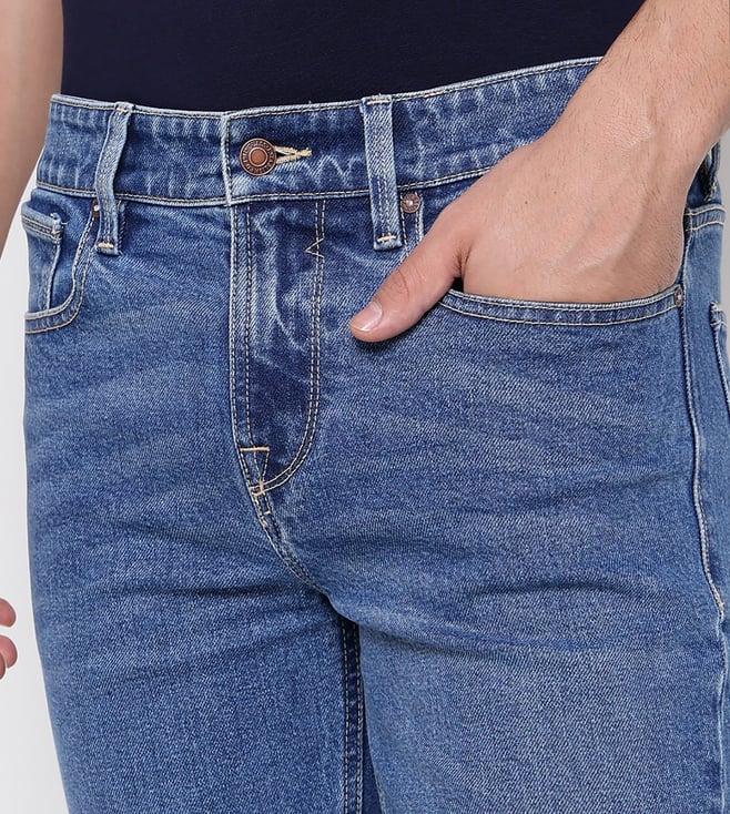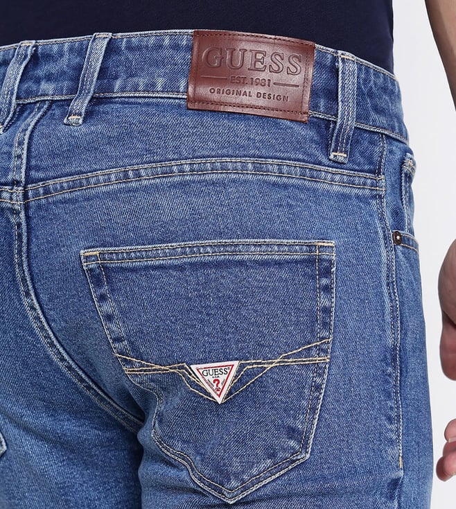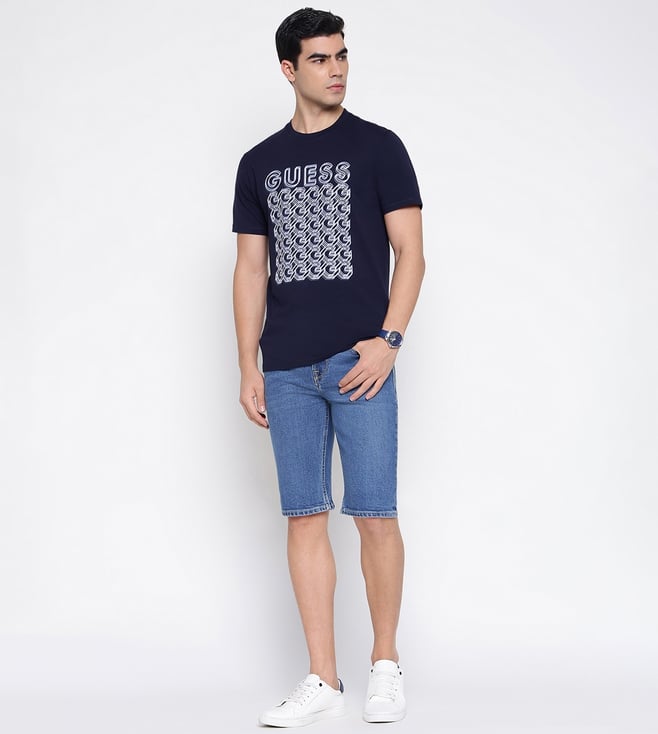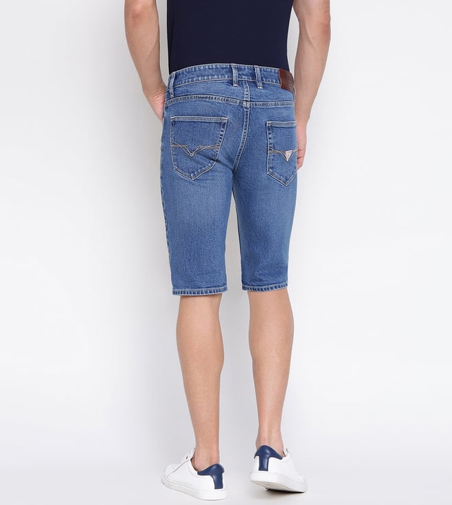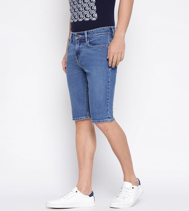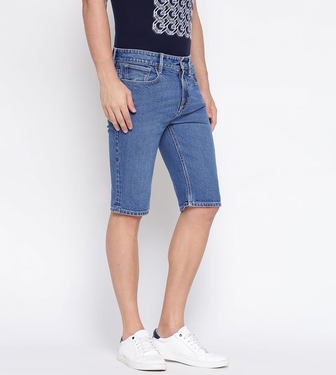 Guess Blue Solid Mid Rise Slim Fit Denim Shorts