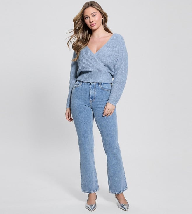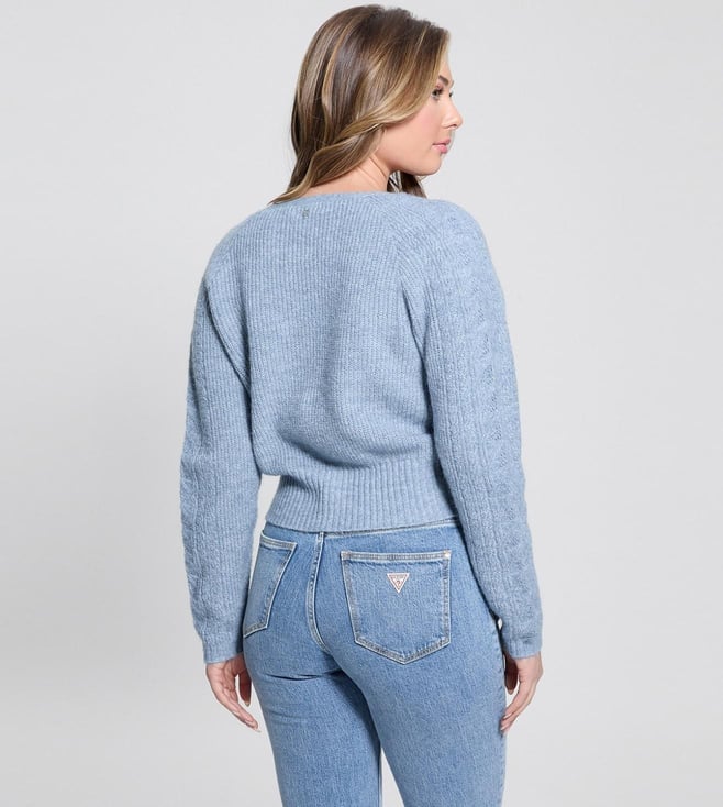 Guess Blue Solid Regular Fit Sweater
