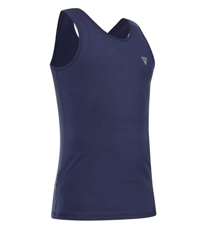 Experience effortless style with our navy blue sleeveless top, designed for the modern man. Crafted from a premium blend of 95% cotton and 5% elastane, this top offers a comfortable regular fit that moves with you. The solid pattern exudes timeless elegance, while the round neckline adds a touch of classic appeal. With a convenient pull-on closure, it's perfect for any casual outing or relaxed day at home. Elevate your wardrobe with this versatile piece that combines comfort and sophistication seamlessly.