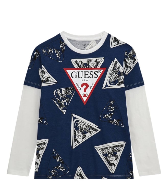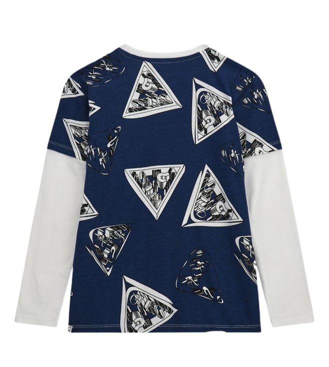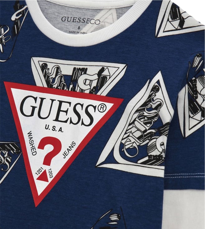GUESS KidsGuess Boys Blue & White Logo Regular Fit T-Shirt
