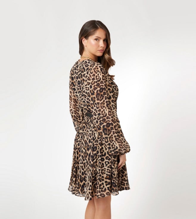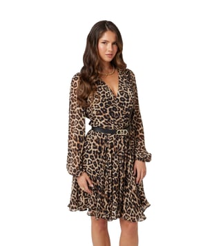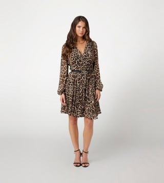 Unleash your wild side with our stunning Fit & Flare Dress in a captivating brown animal print. Crafted from soft, breathable viscose, this dress offers a regular fit that flatters every silhouette. The elegant V-neckline and long sleeves add a touch of sophistication, making it perfect for both day and night. With its easy pull-on closure, getting ready is a breeze. Whether you're heading to the office or a night out, this dress promises comfort and style, ensuring you stand out effortlessly.