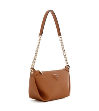 Guess Cognac Solid Meridian Top Zip Shoulder Bag