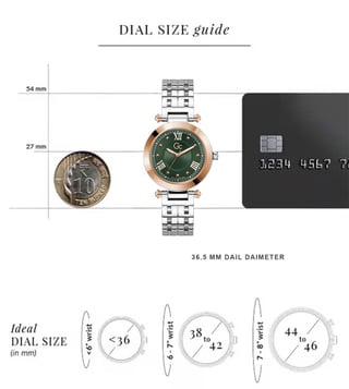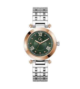 The GC PrimeChic 36.5 mm Analog Watch for women showcases a refined green dial within a 36.5 mm case, blending elegance with precision. Its reliable analog movement delivers accurate timekeeping, making it an excellent choice for everyday wear and special occasions. This watch embodies a sophisticated style that complements a variety of outfits while ensuring dependable performance.