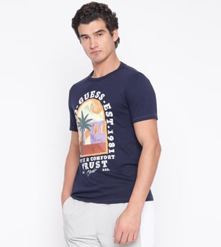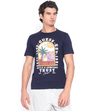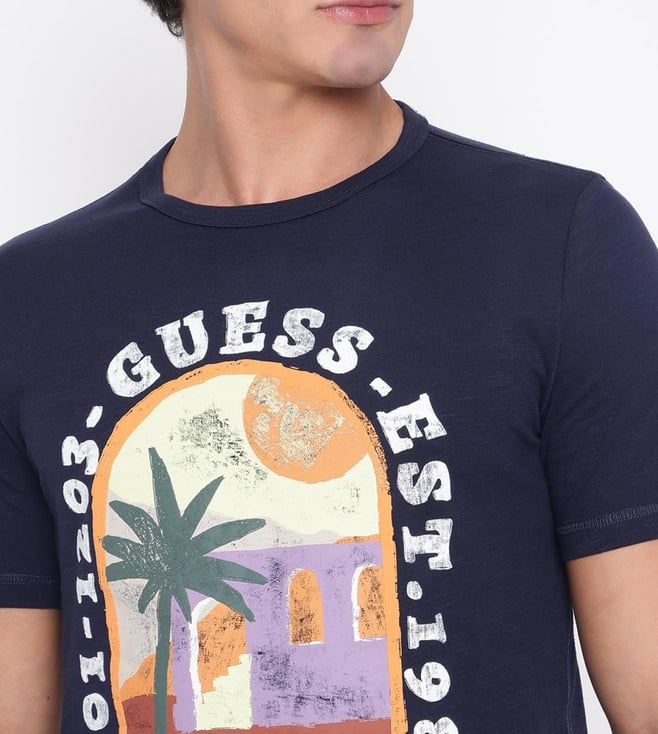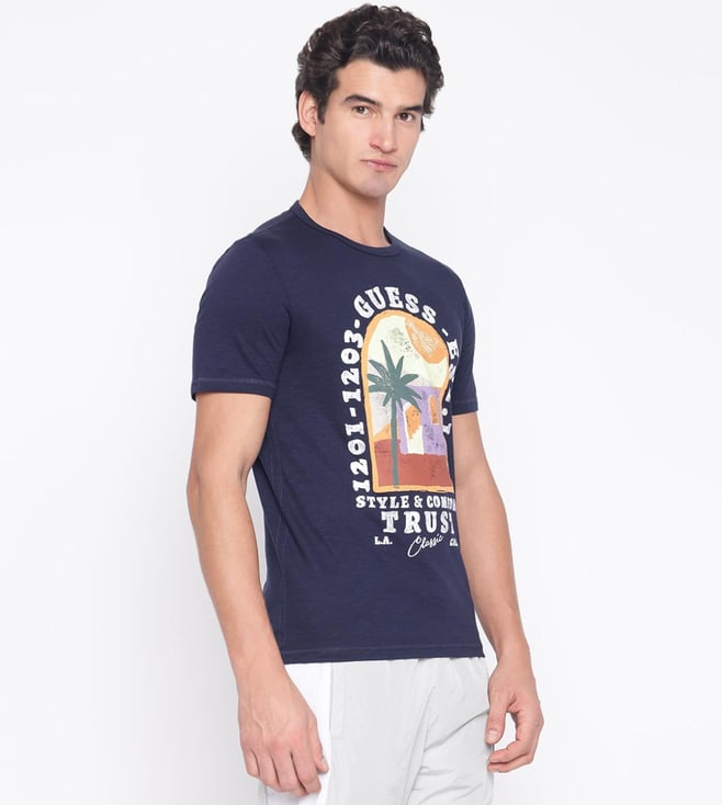 Guess Dark Blue Printed Crew Neck Short Sleeve T-shirt