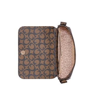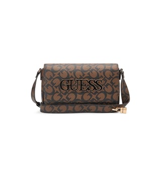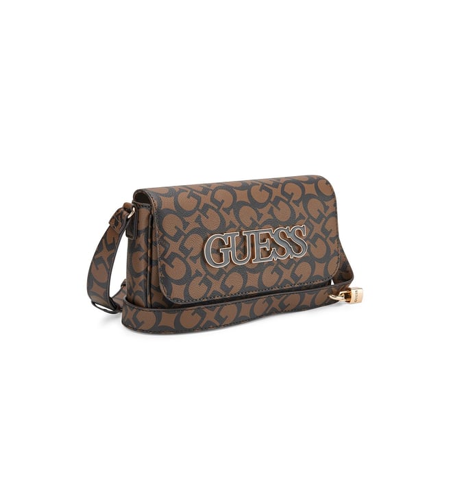 Guess Dark Brown Printed Reinee Crossbody Bag