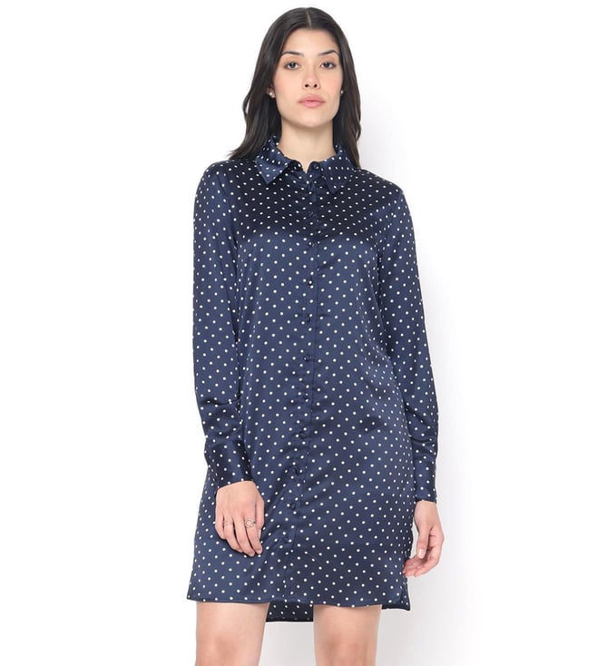 Dark Blue Printed Shirt Collar Full Sleeve Shirt Dress