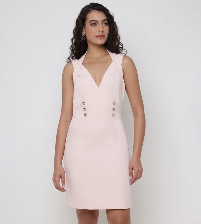 Amanda Eco Calm Pink Solid V-Neck Regular Fit Sheath Dress