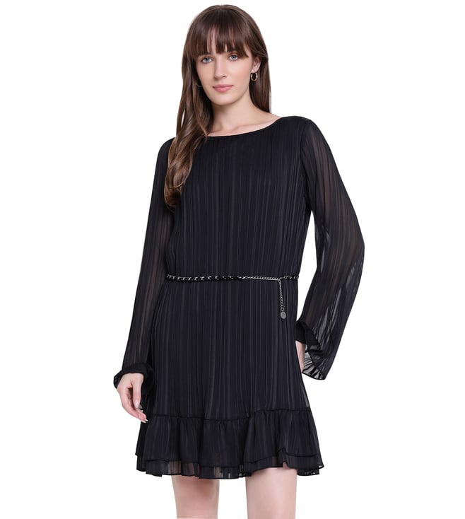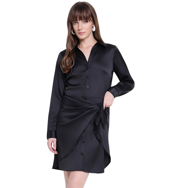 Jet Black Polyester Solid Regular Shirt Dress
