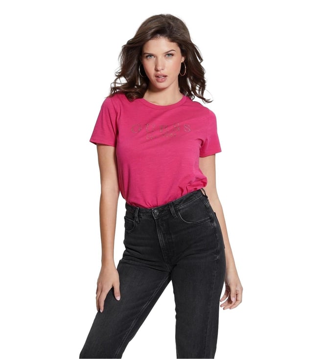 GUESS Full Bloom Pink Logo Regular Fit T-Shirt
