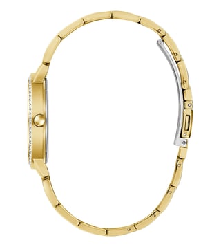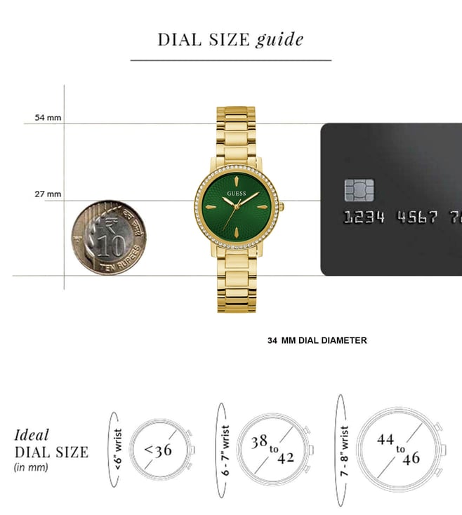 Elevate your style with the GUESS Gd Spiral Green Round Dial Analog Women Watch - U1405L4M. This eye-catching timepiece features a sleek green dial with a unique spiral design, making it a standout accessory for any outfit. With its analog display and reliable quartz movement, you can trust this watch to keep you on time and on trend. The elegant round case and stainless steel band add a touch of sophistication, while the water-resistant design ensures durability. Make a statement with this chic and versatile watch that effortlessly combines fashion and function.
