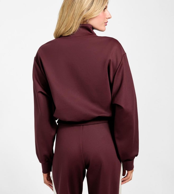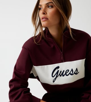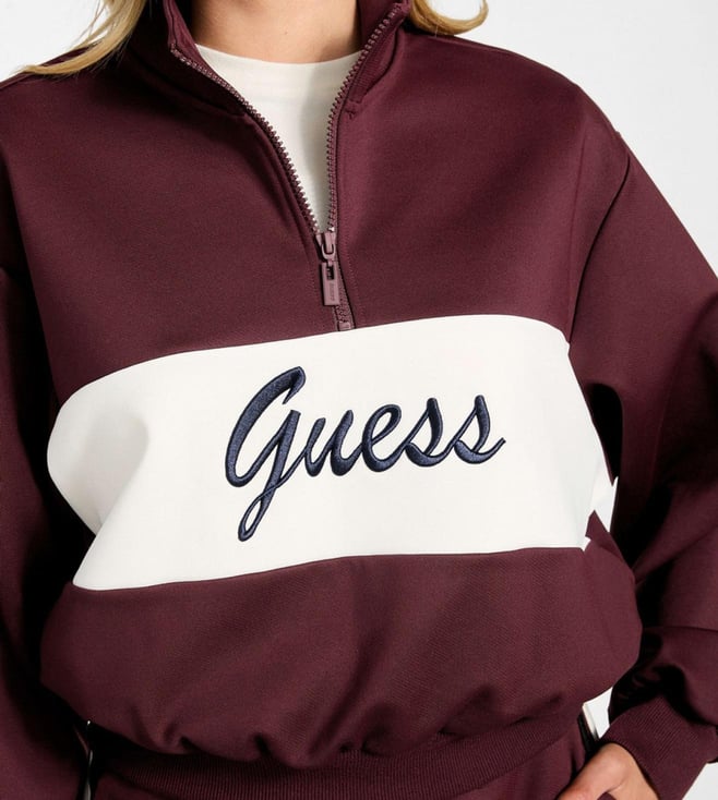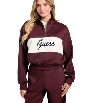 Guess Grape Violet Color-Blocked High Neck Full Sleeves Sweatshirt