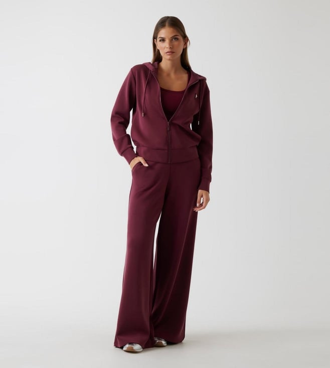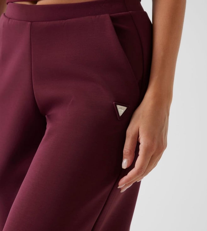 Guess Grape Violet Solid Full Length Wide Leg Trousers