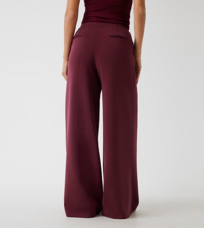 Discover the perfect blend of style and comfort with our wide leg trousers in a rich wine color. Crafted from a premium polyester blend fabric, these trousers offer a luxurious feel and a flattering drape. The high-rise design accentuates your waist, while the pull-on closure ensures ease and convenience. The solid pattern provides a versatile look, making these trousers ideal for both casual outings and formal occasions. Pair them with your favorite blouse or sweater for an effortlessly chic ensemble.