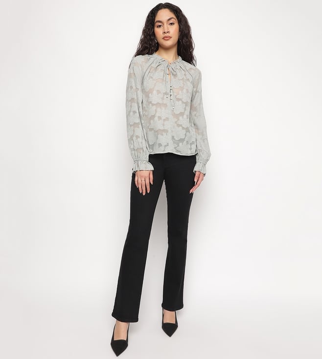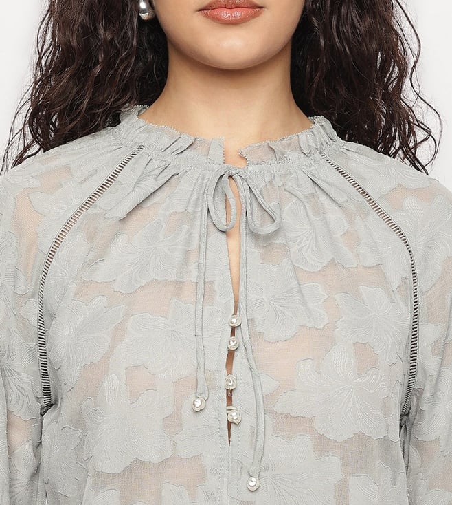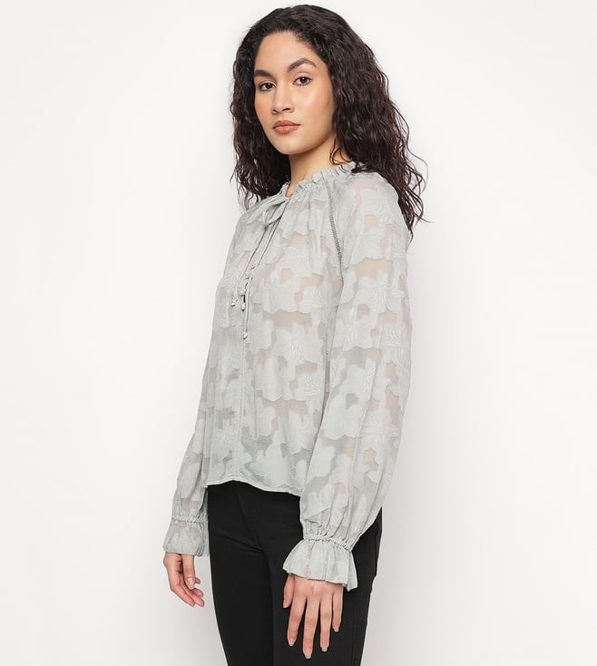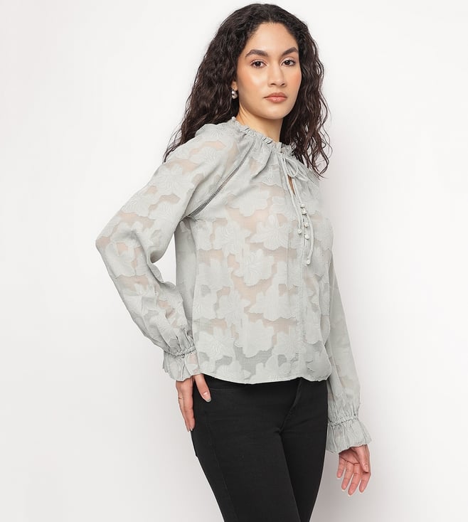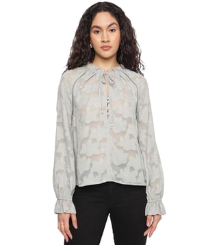 Embrace effortless elegance with our Malibu Sage top, a harmonious blend of style and comfort. Crafted from 100% polyester, this self-design masterpiece features a relaxed fit that drapes gracefully, ensuring all-day comfort. The long sleeves add a touch of sophistication, while the mandarin collar exudes a modern flair. A chic tie-up closure completes the look, offering versatile styling options. Perfect for any occasion, this top is a testament to timeless fashion and contemporary design.