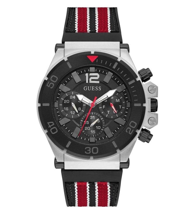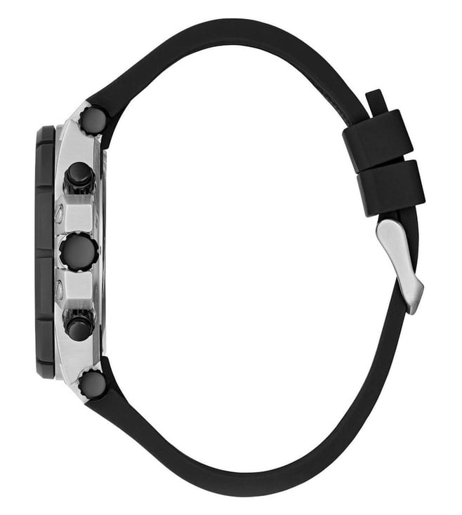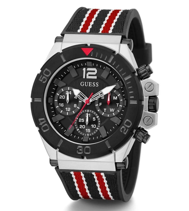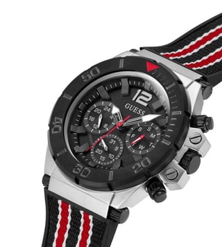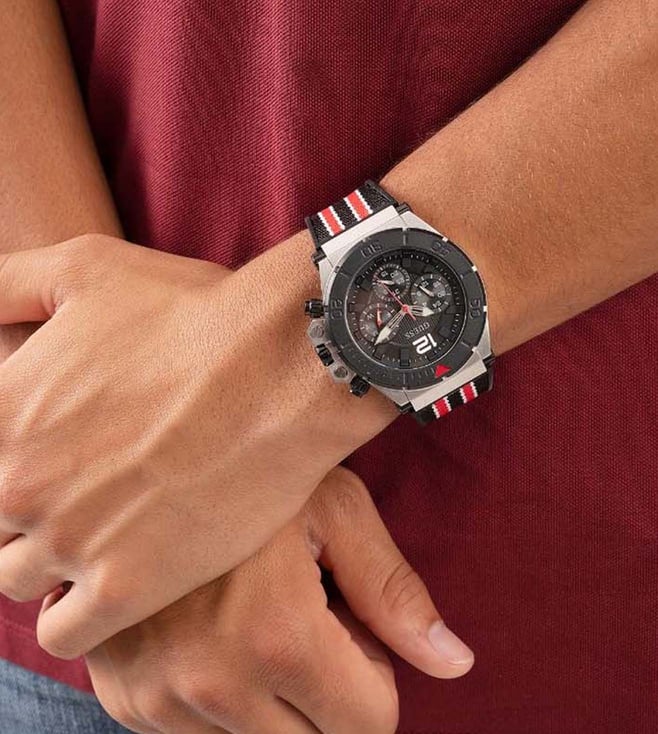 If you want a distinct look, this watch from GUESS is a must-have. Enclosed in a 48 mm case, the round-shaped dial is secured by a mineral glass. It displays chronograph functionality and works on a quartz movement. Besides, it is water resistant up to 50 m and is finished with a buckle strap that provides a secure fit on the wrist.
