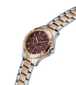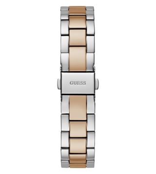 Look modish by donning thiswomen's analog watch from the collection by GUESS. Thered round dial is protected by a mineral glass. It features and a crown for time adjustment. The stainless steel strap comes in a two tone hue that further elevates the look of the timekeeper. Besides, it is completed with a pilot buckle clasp to ensure a secure fit on the wrist.