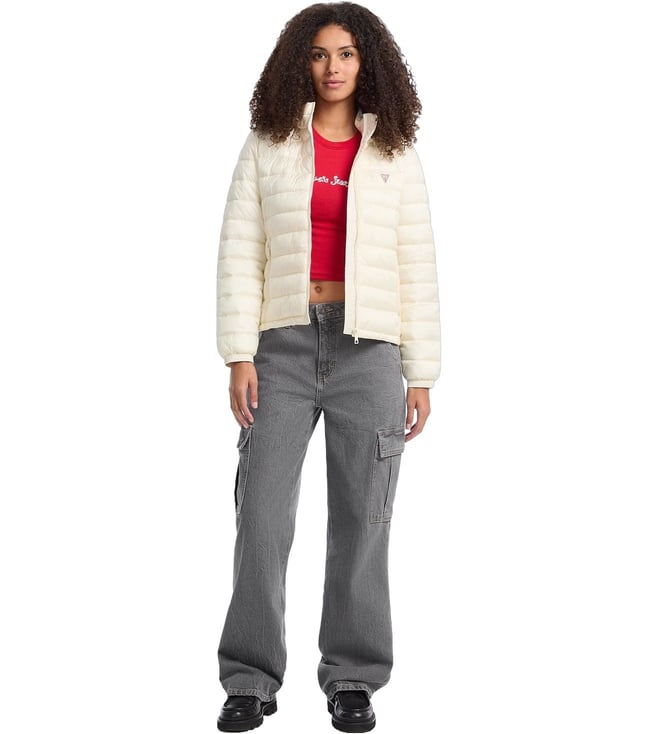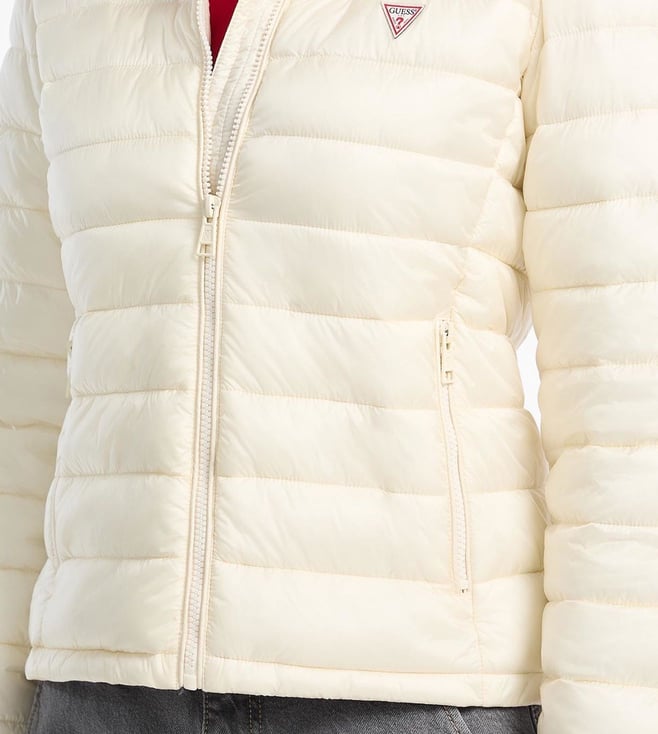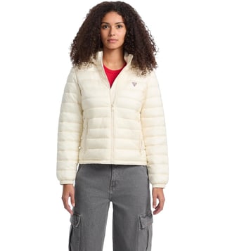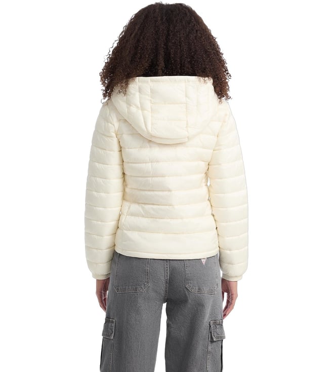 Guess Jeans Beige Regular Fit Hooded Puffer Jacket
