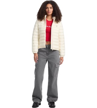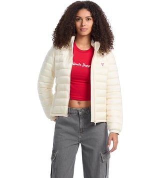 Stay warm and stylish in the Guess Jeans Beige Regular Fit Hooded Puffer Jacket. This versatile jacket combines fashion and function with its cozy puffer design and classic beige color. The regular fit ensures a comfortable and flattering silhouette, while the hood provides added protection from the elements. Perfect for chilly days or outdoor adventures, this jacket is a must-have addition to your wardrobe. Upgrade your outerwear game with this chic and practical piece from Guess Jeans.