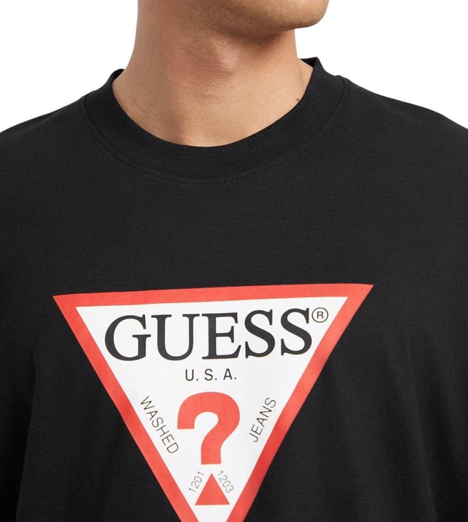 Elevate your casual wardrobe with the Guess Jeans Black Iconic Logo Printed Oversized T-Shirt. Crafted from soft cotton, this stylish tee features the iconic Guess logo for a touch of retro flair. The oversized fit provides comfort and versatility, perfect for pairing with your favorite jeans or leggings. Whether you are running errands or meeting up with friends, this t-shirt will keep you looking effortlessly cool and on-trend. Upgrade your street style with this must-have piece from Guess Jeans.