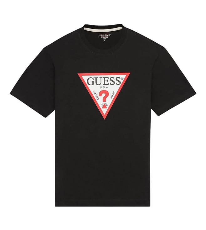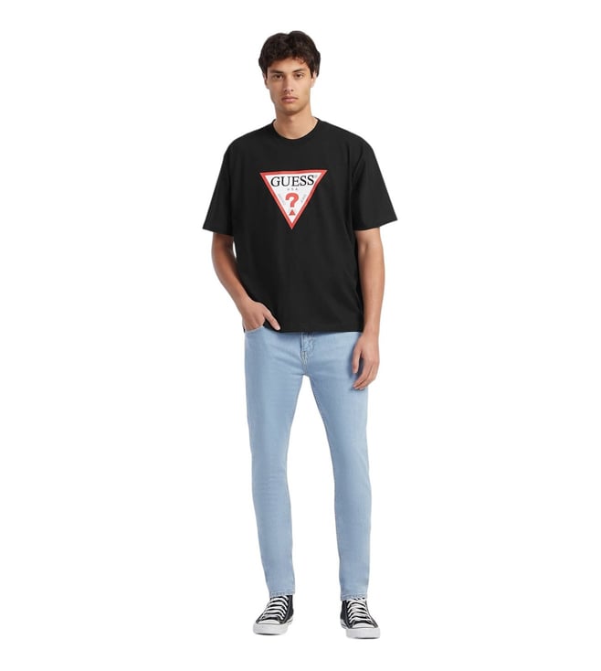 Guess Jeans Black Iconic Logo Printed Oversized T-Shirt