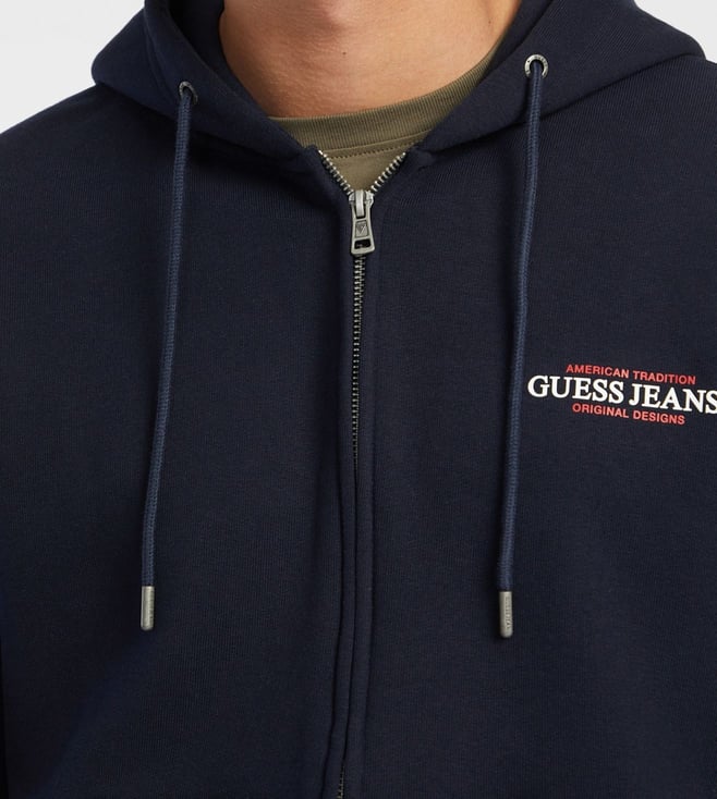 Guess Jeans Blue America Trad Logo Regular Fit Zip Hooded Sweatshirt