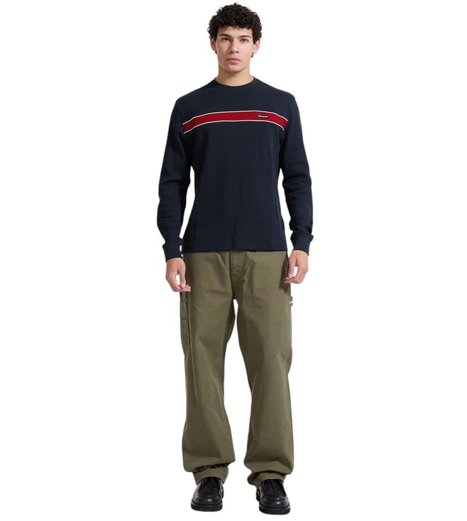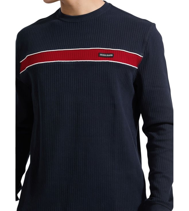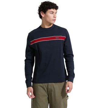 Amp up your wardrobe with this regular sweatshirt from Guess Jeans. Tailored to sartorial perfection from premium quality fabric, it assures a soft and soothing touch against the skin. The round neck adds to its appeal. The printed pattern makes it a captivating choice.