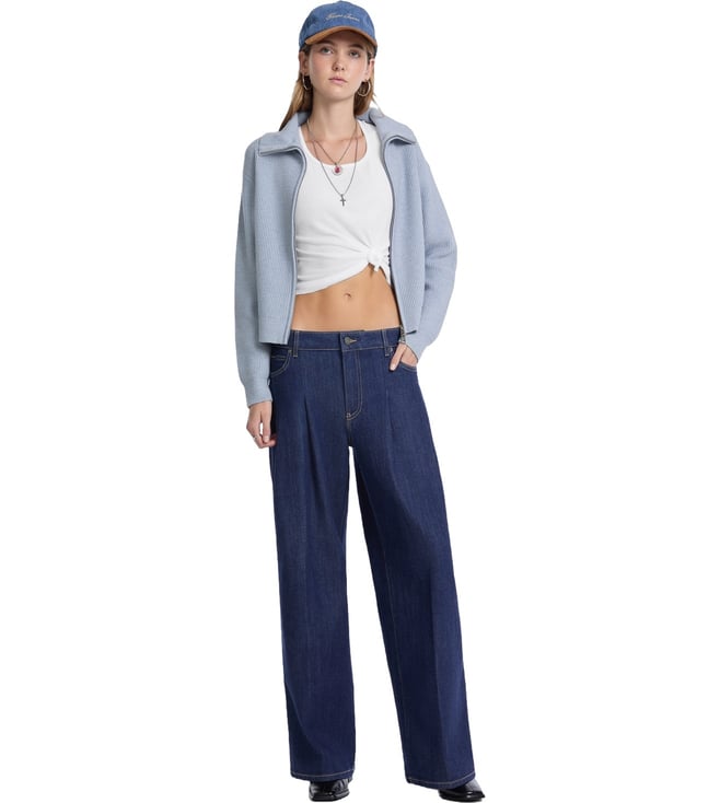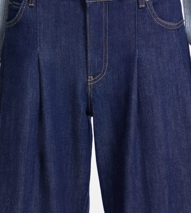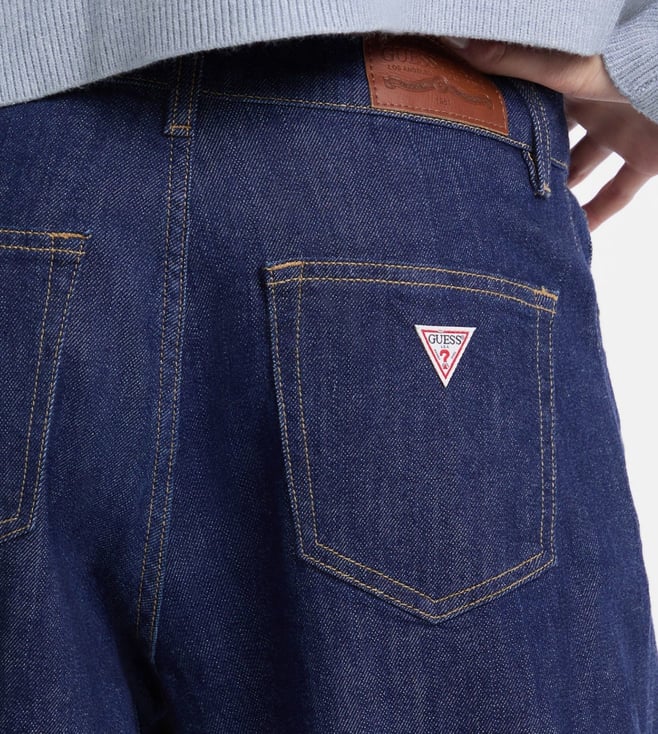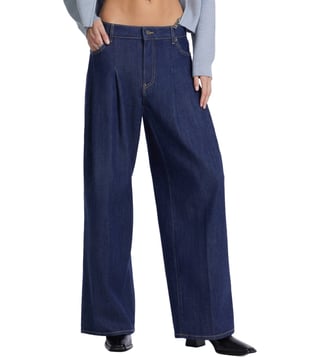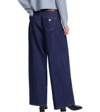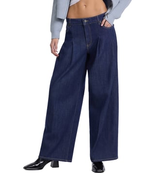 Elevate your denim game with Guess Jeans G12 Navy Blue Pleated Mid Rise Extra Wide Leg Fit Denim. These jeans offer a flattering mid-rise waist, pleated detailing, and an on-trend extra wide leg fit for a fashion-forward look. Crafted from high-quality denim, they provide a comfortable and stylish option for everyday wear. Whether you are dressing up or keeping it casual, these jeans will be your new go-to wardrobe essential. Upgrade your style with Guess Jeans G12.