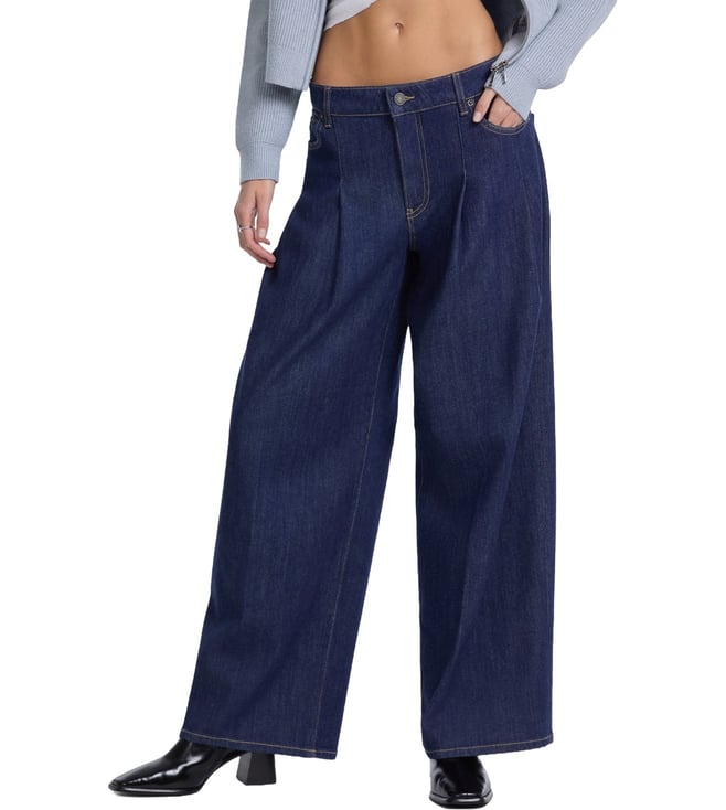 Guess Jeans G12 Navy Blue Pleated Mid Rise Extra Wide Leg Fit Denim