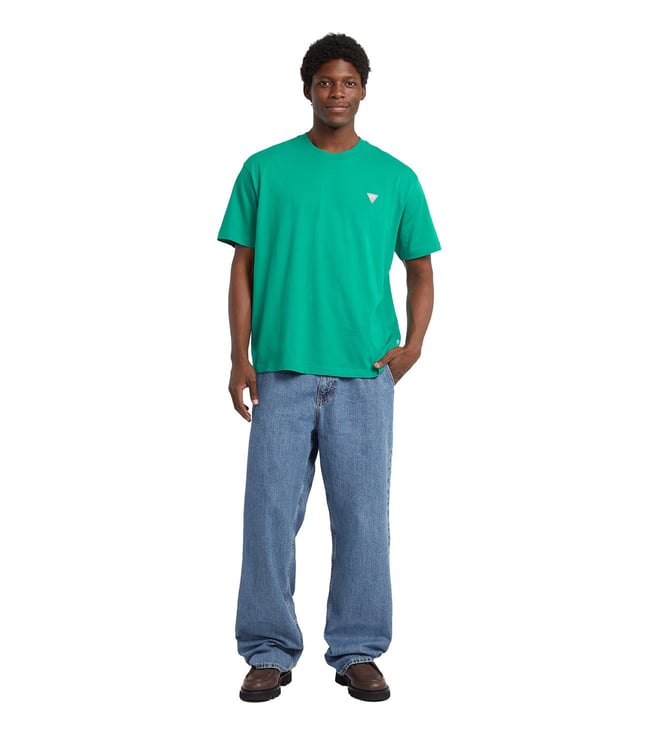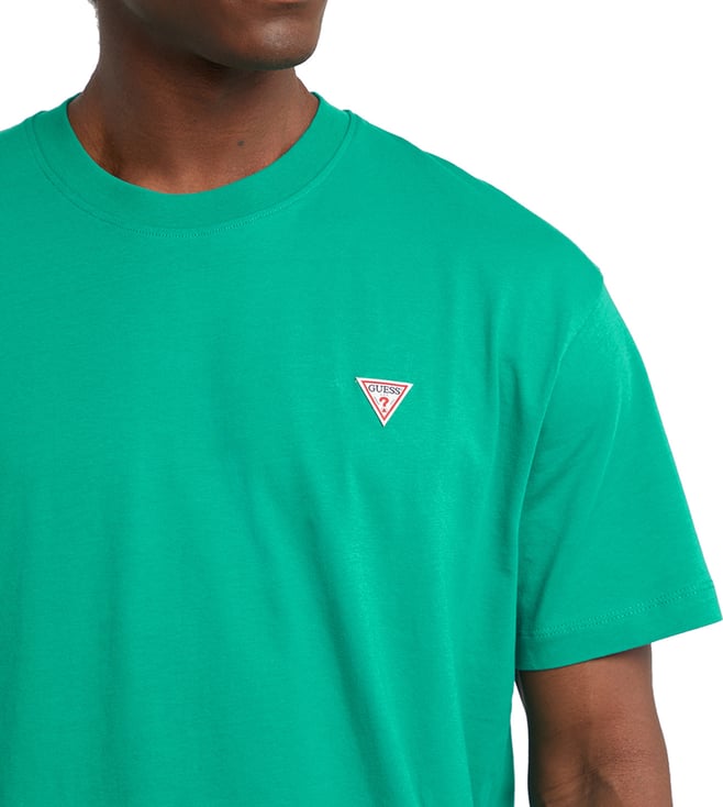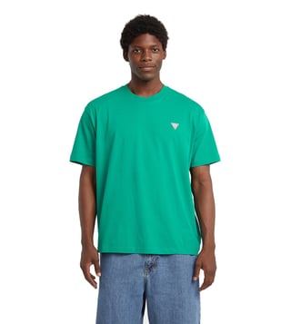 Elevate your casual wardrobe with the Guess Jeans Green Mini Triangle Logo Printed Oversized T-Shirt. Featuring a trendy oversized fit and a bold triangle logo print, this stylish tee effortlessly combines comfort and fashion. The vibrant green color adds a pop of personality to any outfit, while the soft fabric ensures all-day comfort. Perfect for everyday wear or dressing up for a night out, this t-shirt is a versatile must-have for anyone looking to make a statement with their fashion choices.