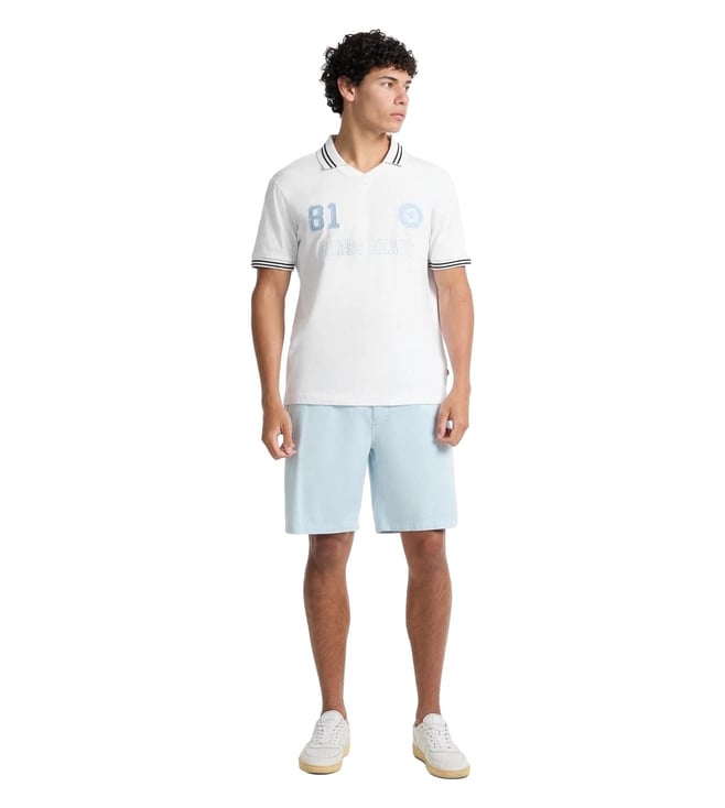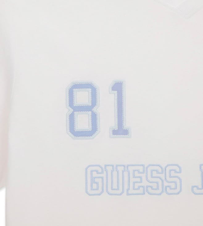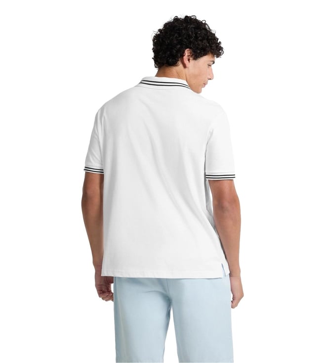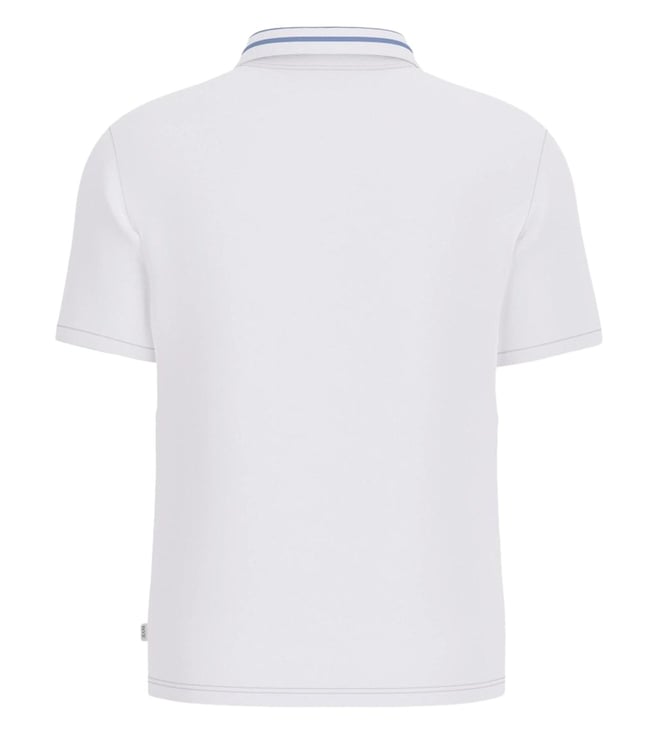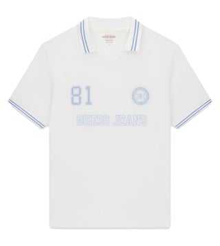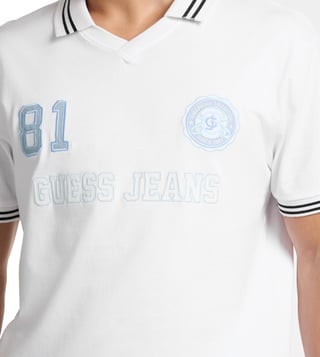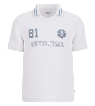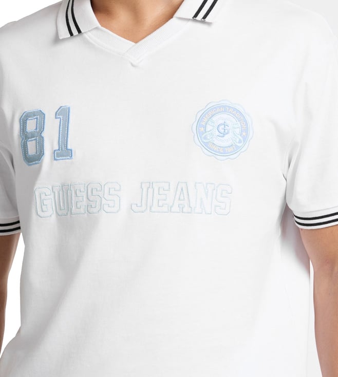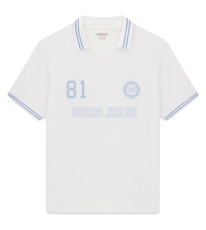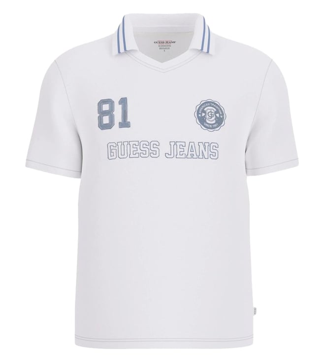 Guess Jeans Pure White Regular Fit Logo Printed Polo T-Shirt