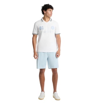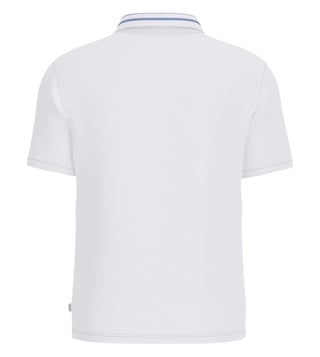 Add zest and zing to your look by wearing this pure white regular fit polo t-shirt from Guess Jeans. Tailored to sartorial perfection from premium quality fabric, it assures a soft and soothing touch against the skin. Exuding short sleeves, it is sure to fetch you compliments from all. It emanates a brand logo which makes it a unique choice.