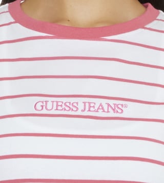 Elevate your casual wardrobe with the GUESS JEANS White Regular Fit T-Shirt. Crafted from soft, breathable fabric, this classic tee offers a comfortable fit that is perfect for everyday wear. The timeless white hue makes it easy to style with any outfit, while the iconic GUESS logo adds a touch of effortless cool. Whether you aree running errands or meeting friends for brunch, this versatile t-shirt will keep you looking and feeling great. Upgrade your basics with the GUESS JEANS White Regular Fit T-Shirt today.
