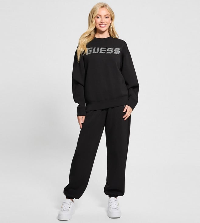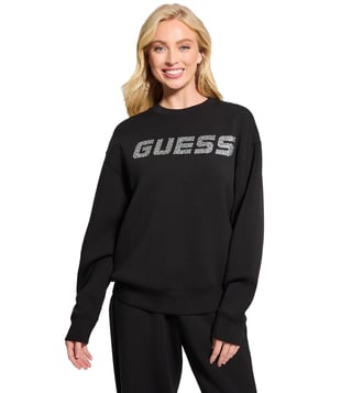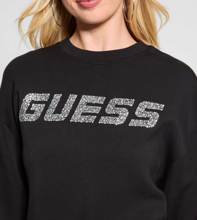 Guess Jet Black A996 Embellished Logo Round Neck Full Sleeves Sweatshirt