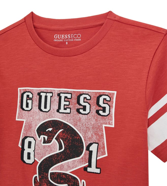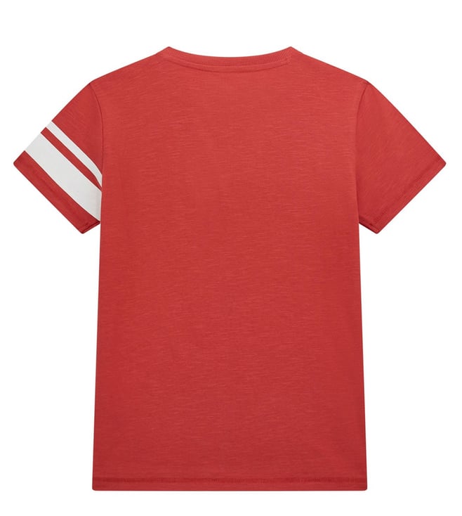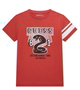 GUESS Kids Cardinal Red Printed Regular Fit Slub Jersey T-Shirt
