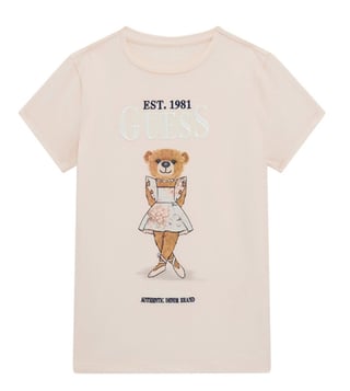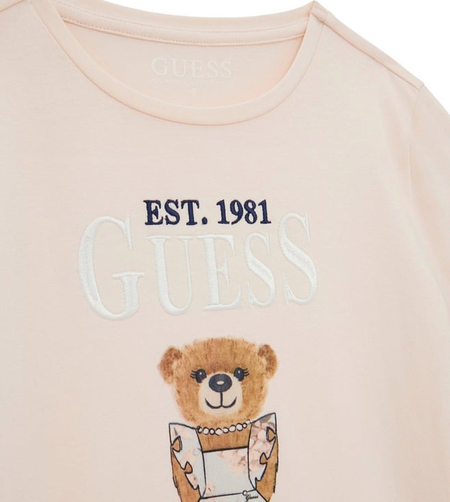 GUESS Kids Elegant Pink Printed Regular Fit T-Shirt