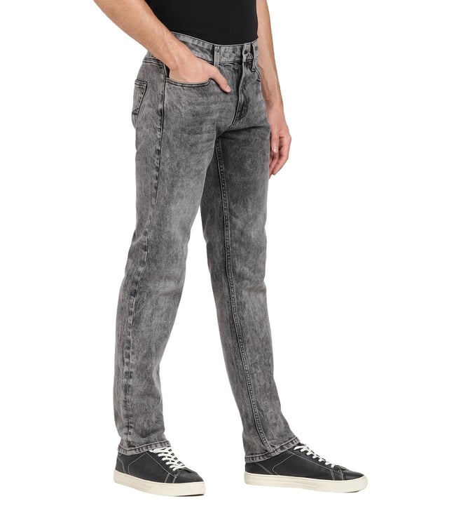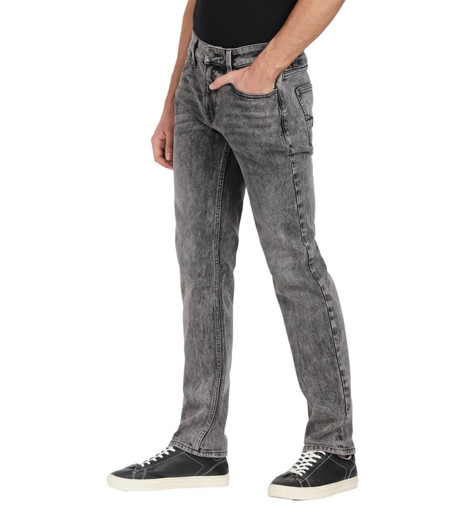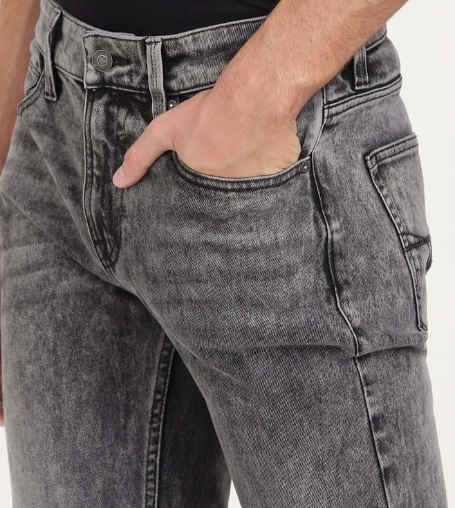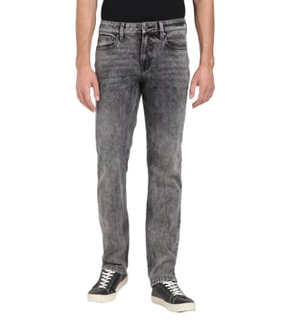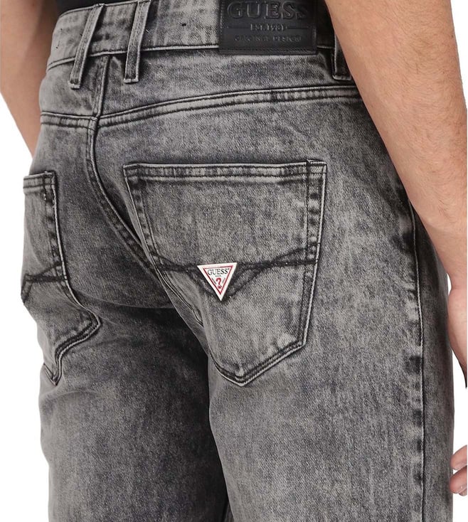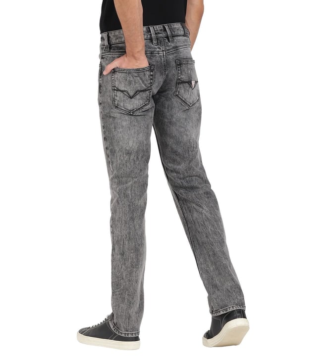Guess Men's Grey Cotton Blend Solid Regular Fit Jeans