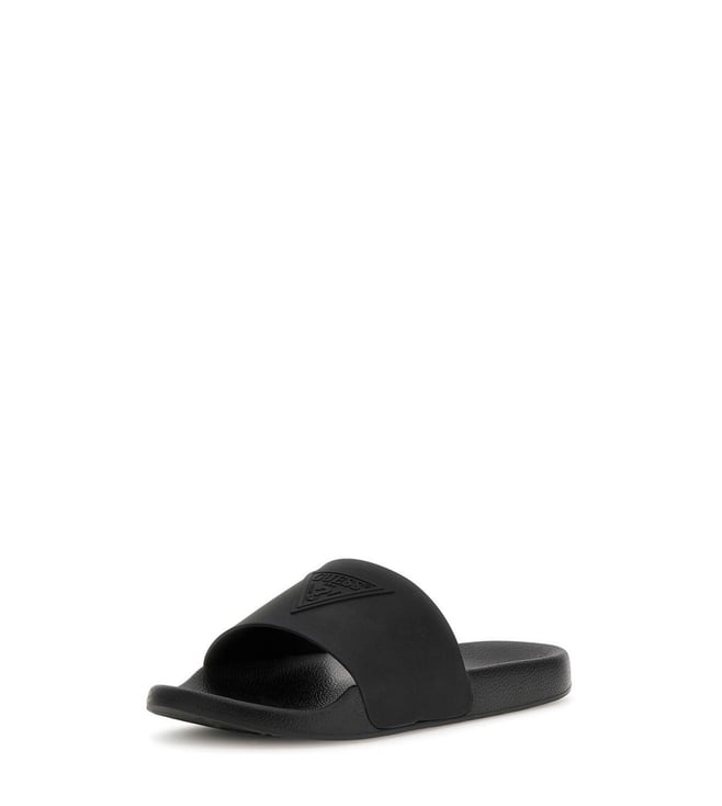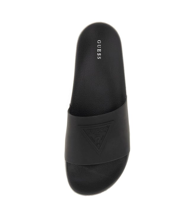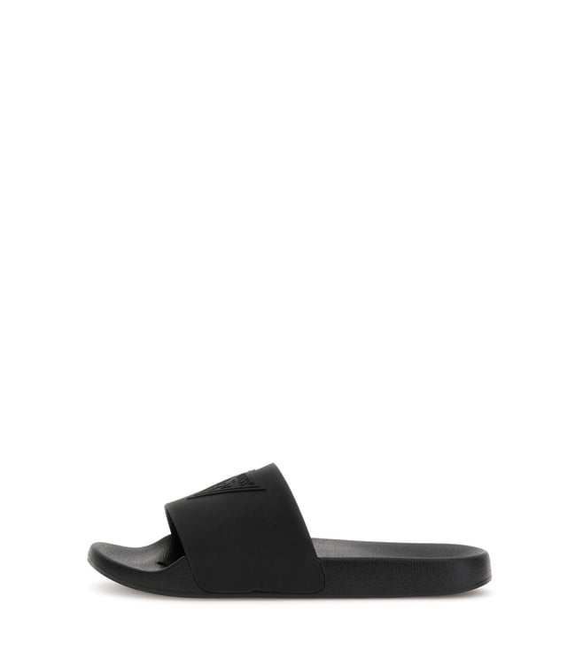 Guess Men Black Solid Slip-On Sliders