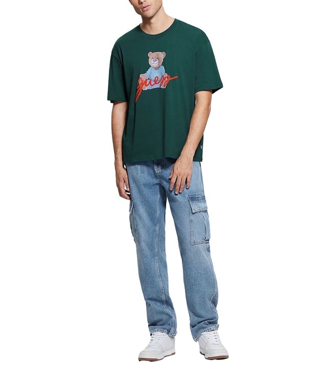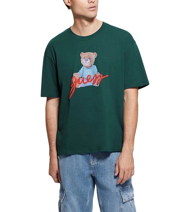 Guess Men's Green Cotton Graphic Slim Fit T-Shirt