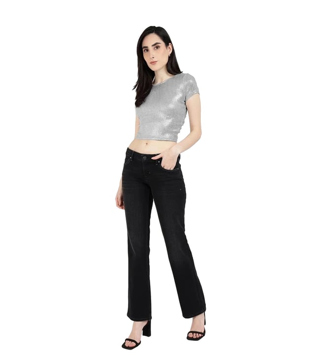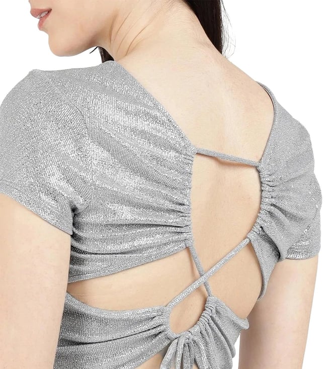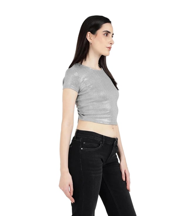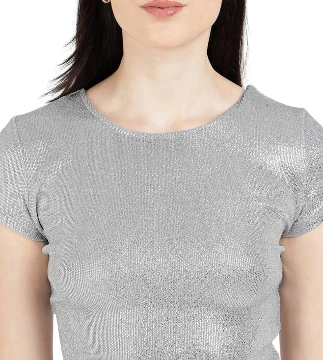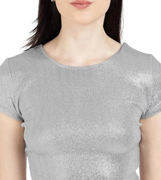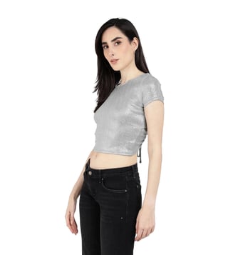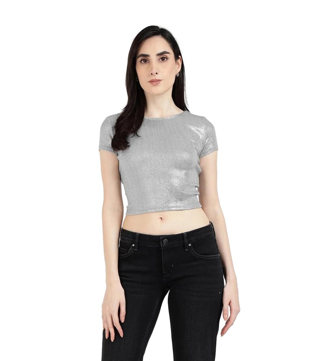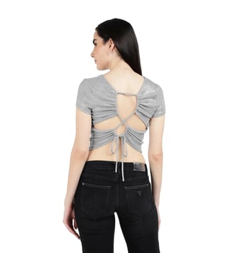 Guess Metalic Silver Regular Fit Crop Top